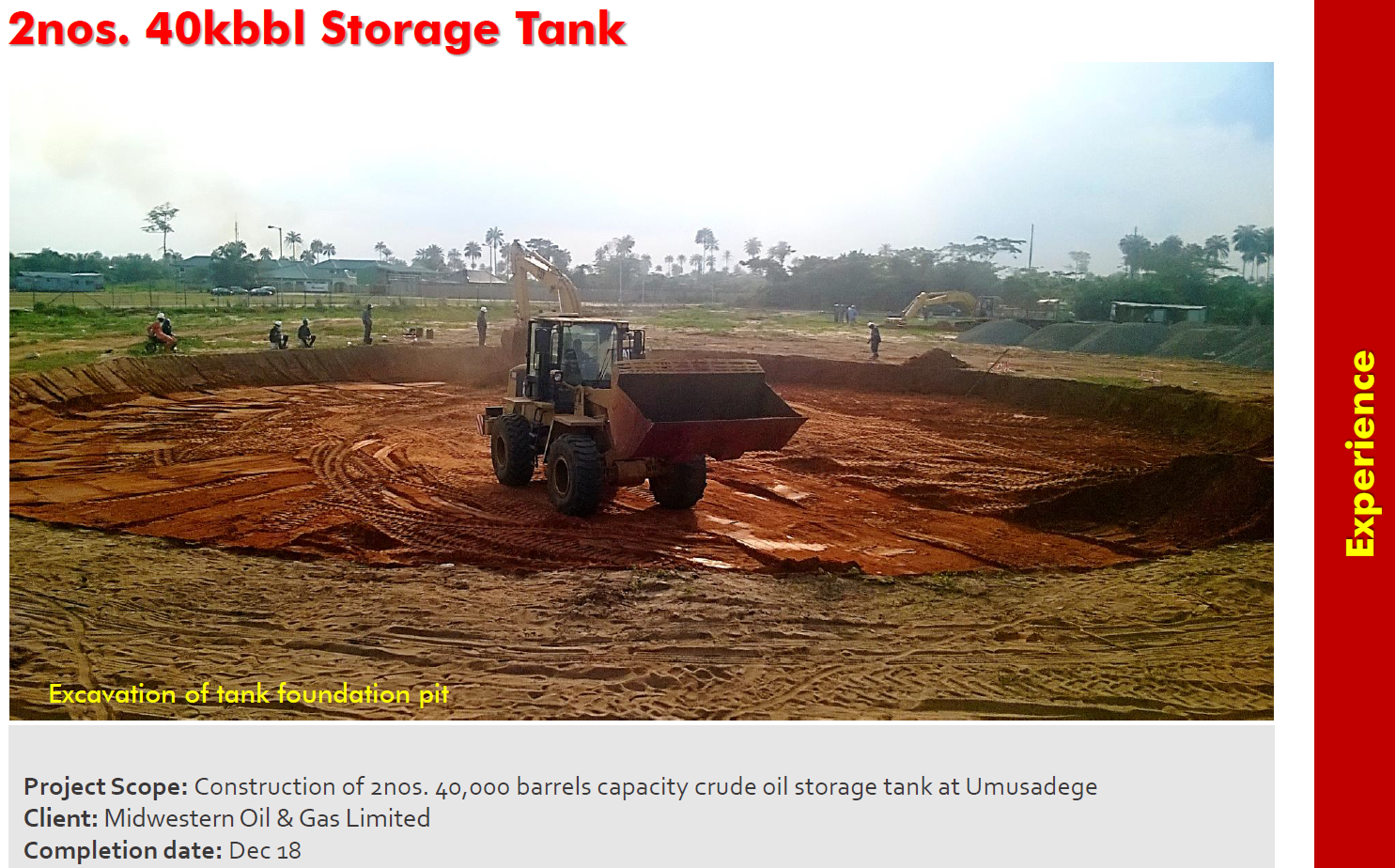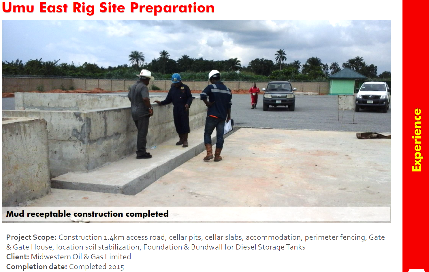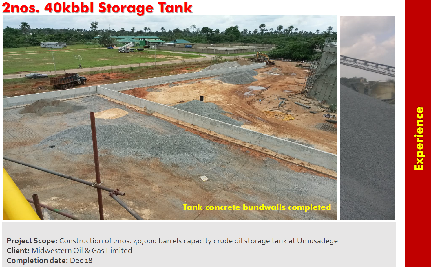 - Construction 1.4km access road, cellar pits, cellar slabs, accommodation, perimeter fencing, Gate & Gate House, location soil stabilization, Foundation & Bundwall for Diesel Storage Tanks.