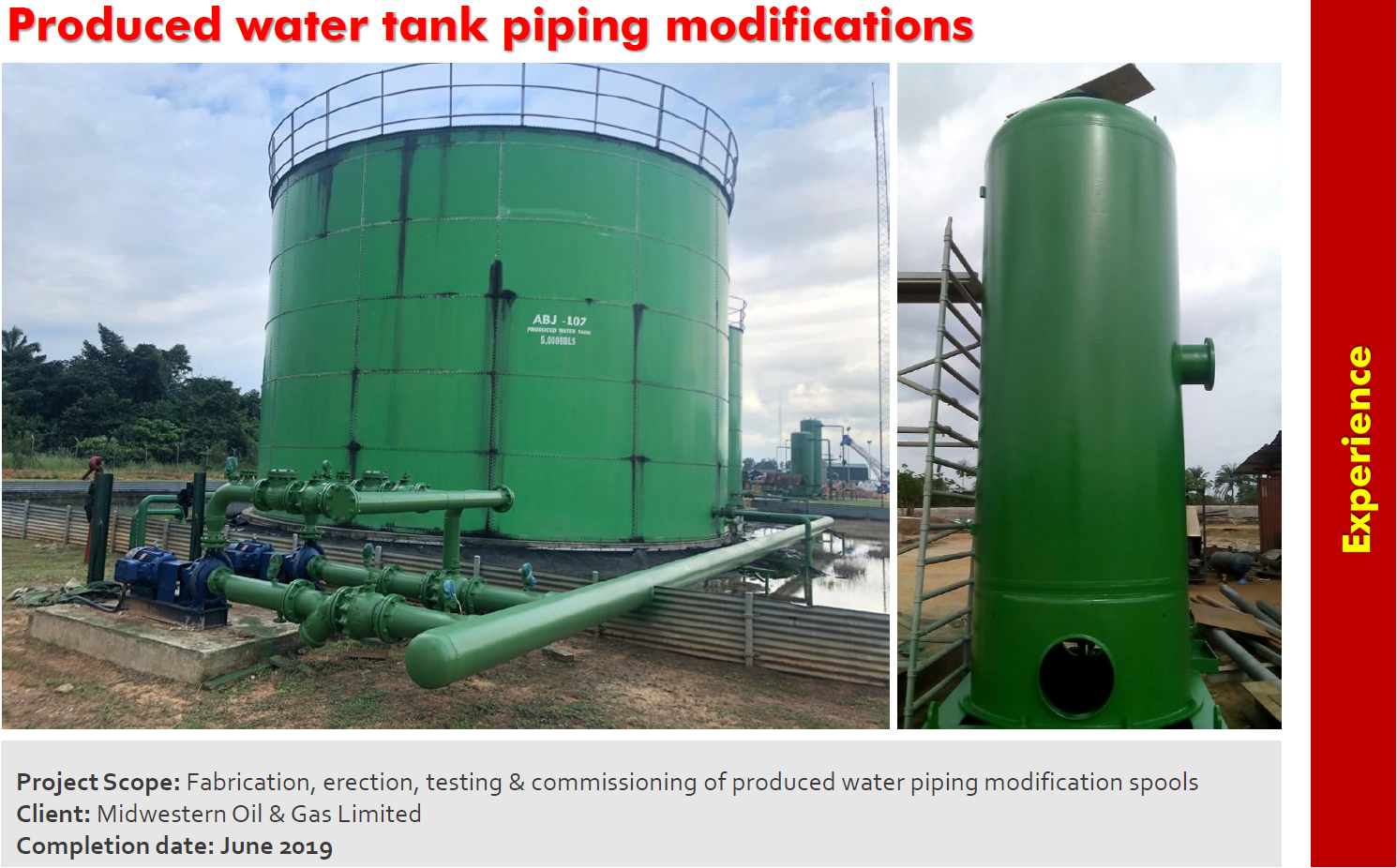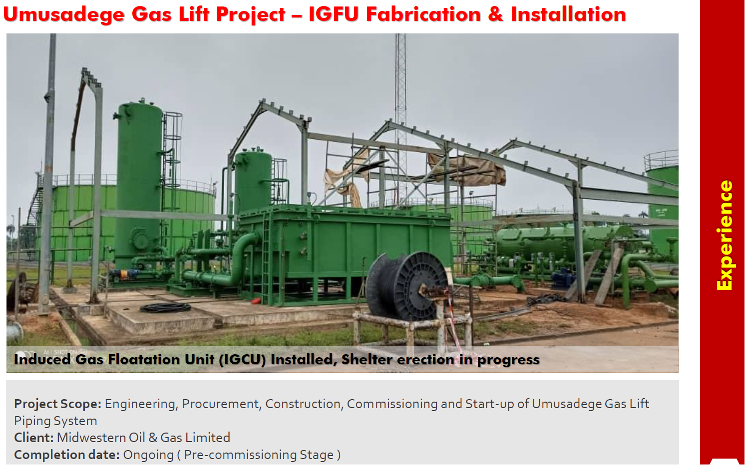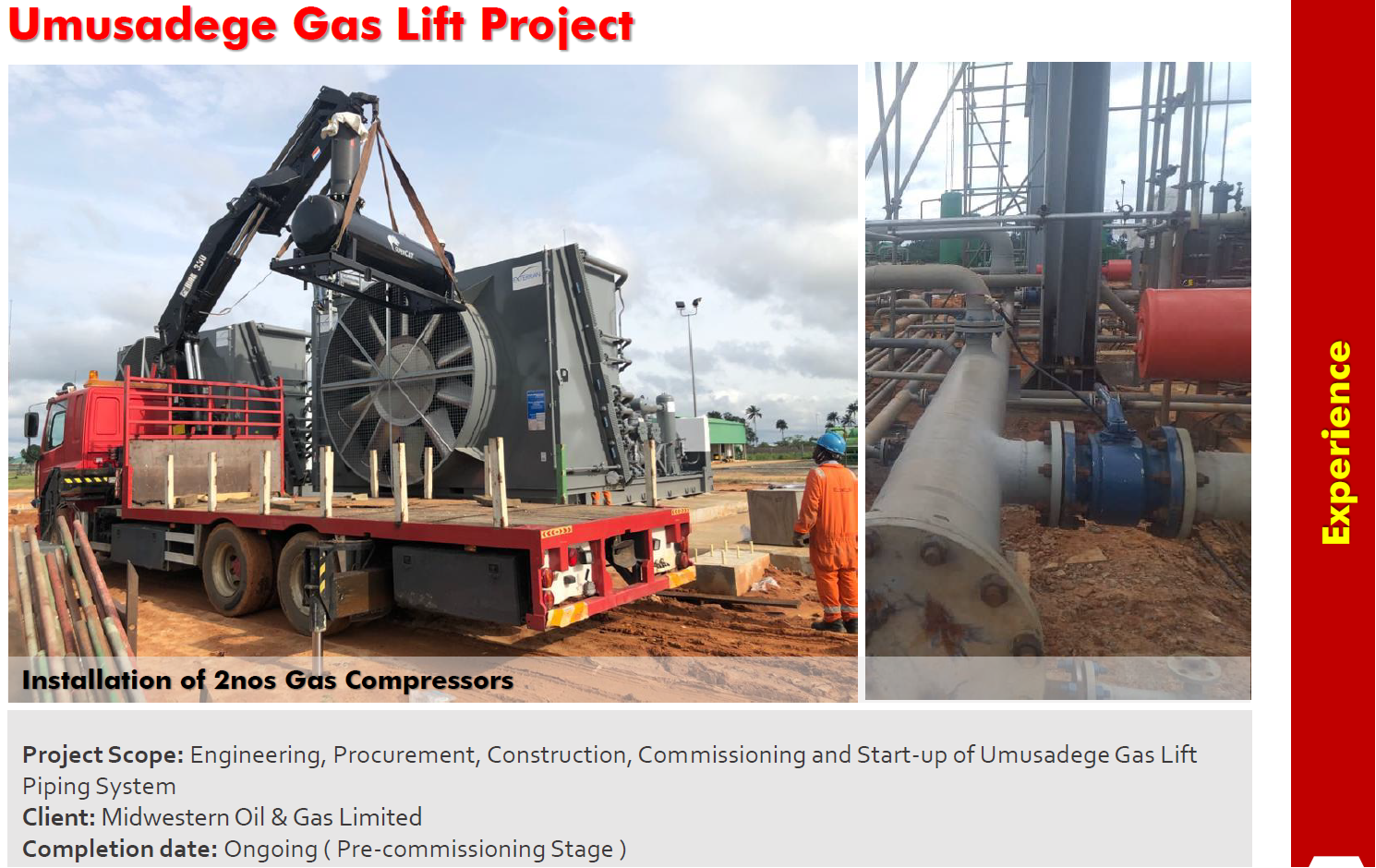 - Engineering, Procurement, Construction, Commissioning and Start-up of Umusadege Gas Lift Piping System