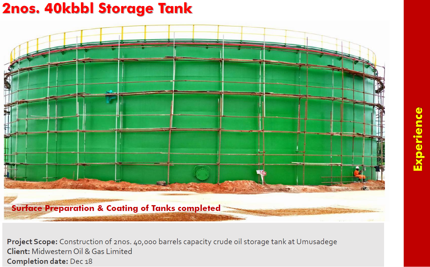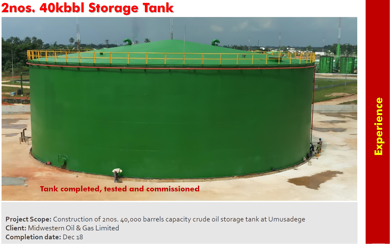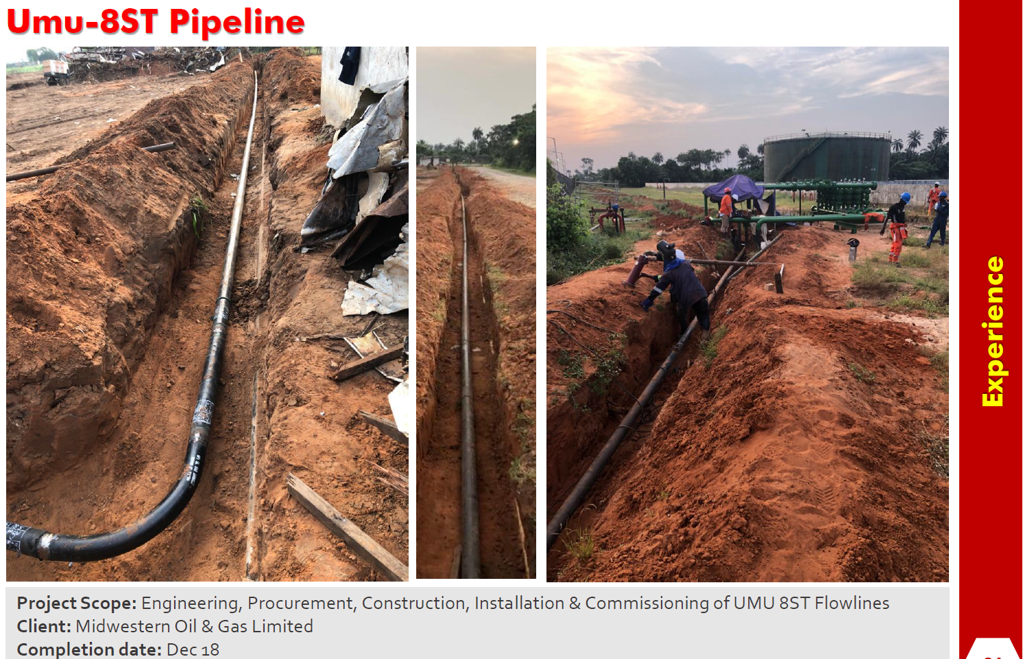 - Engineering, Procurement, Construction, Commissioning and Start-up of Umusadege Gas Lift Piping System